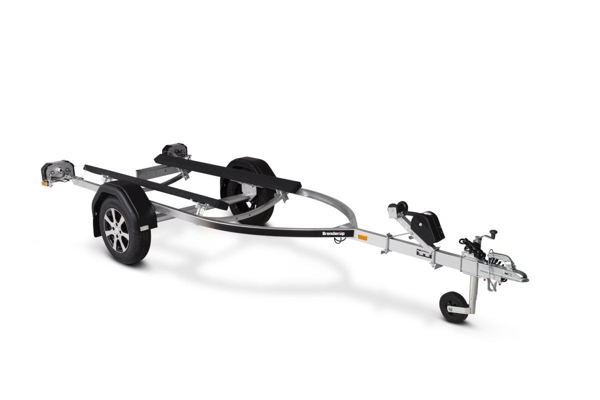 Brenderups trailer til vandscooter er udviklet til at beskytte skroget på din vandscooter, når du laster den på traileren eller søsætter den i vandet. Med de separate lygtekonsoller bliver af- og pålæsning endnu nemmere. Trailerens skinner er beklædt med et unikt materiale, som sikrer lav friktion og nem søsætning af din vandscooter. Lukket spil og spiltårn, som kan justeres i både højde og længde. Traileren på billedet kan være vist med ekstraudstyr.